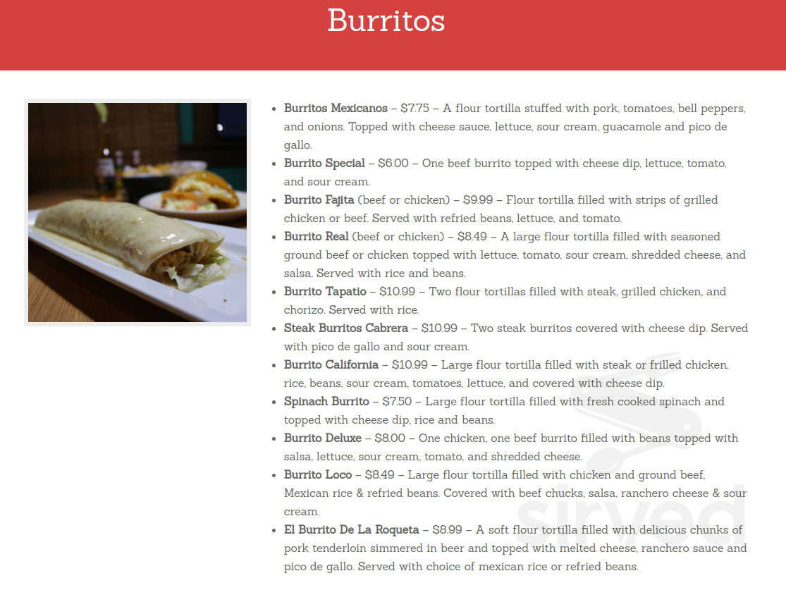 Cabrera S Mexican Restaurant Menu In Bowling Green Kentucky Usa